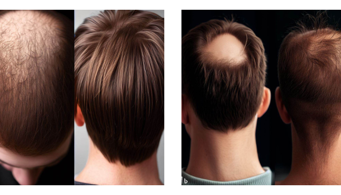 Imágenes falsas del antes y después de un trasplante capilar con IA (Inteligencia Artificial)